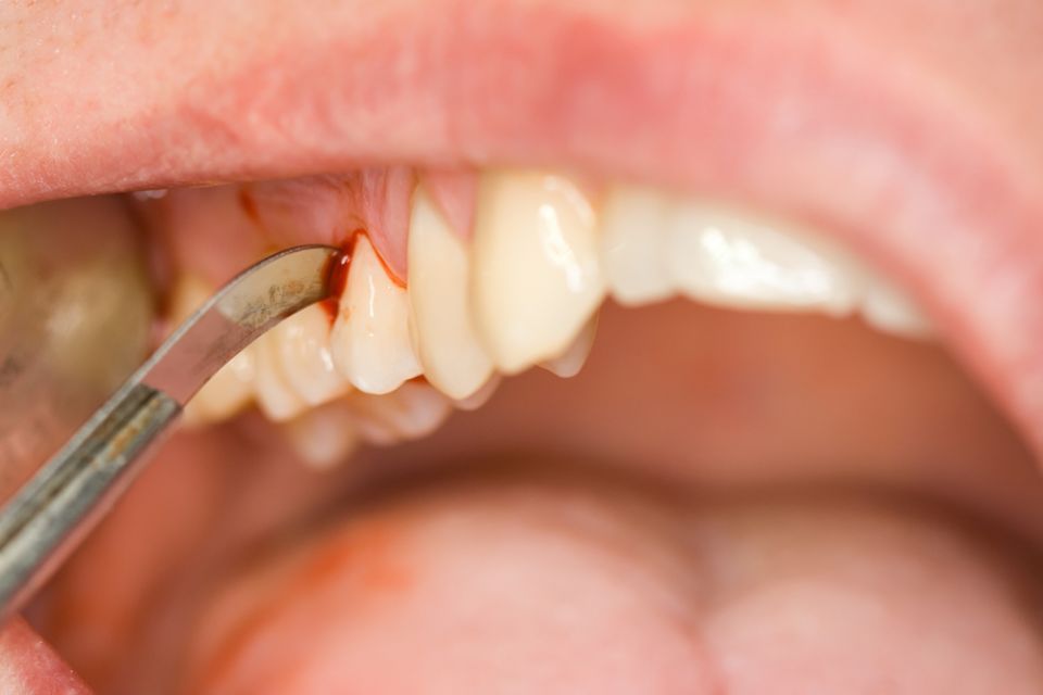 La gingivitis que cursa con inflamación y enrojecimiento de las encías y posible sangrado al cepillado.